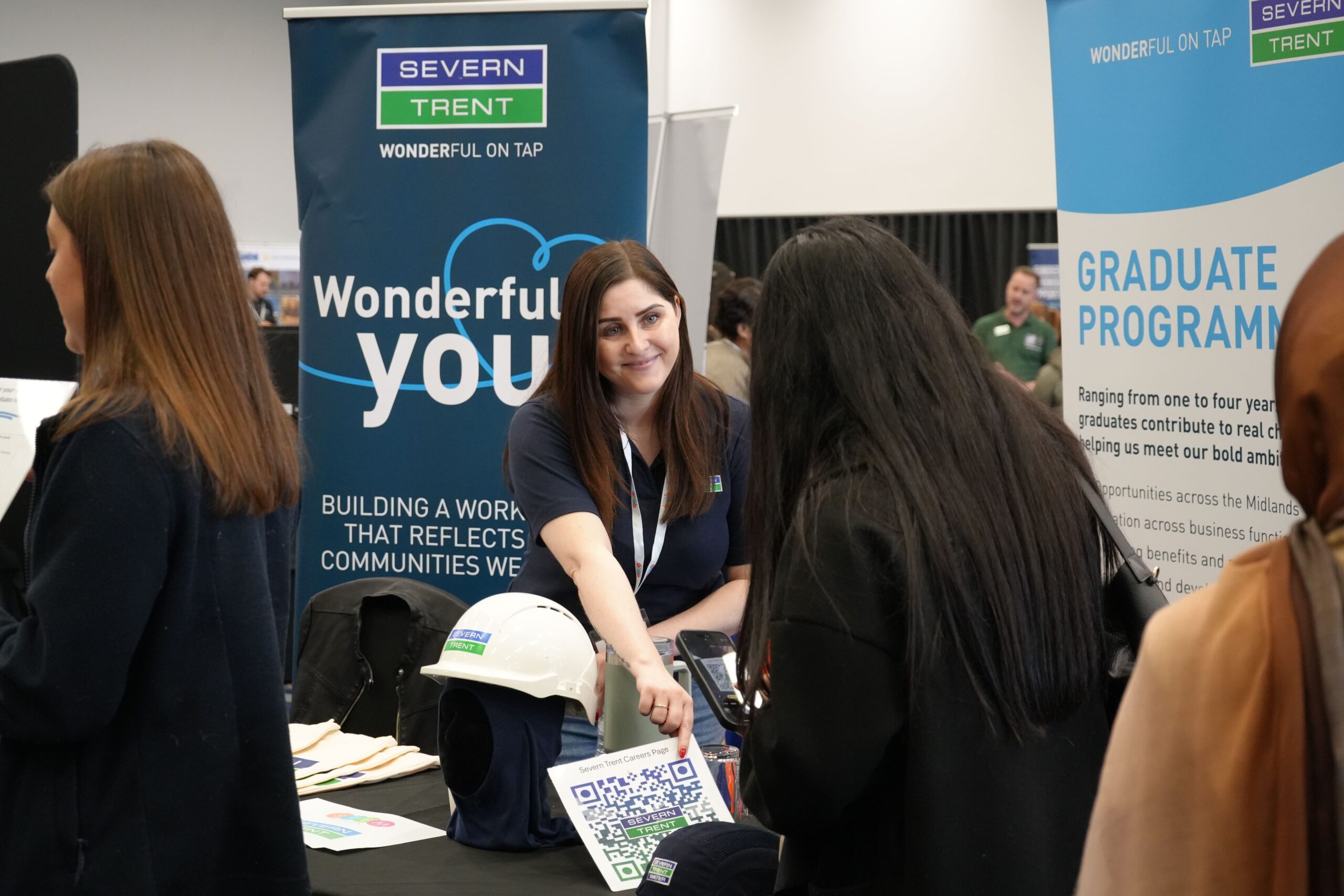 We welcomed over 190 students to meet with 30 top STEM employers, hear some inspirational talks and take part in a panel session with women working in industry. Students from universities in Birmingham, Coventry, Warwick, Loughborough, and Leicester, studying a variety of STEM subjects, were invited. The event attracted impressive exhibiting companies such as Buckingham Group, MThree, PwC, IBM, REPL Group, West Midlands Trains, Altius, FDM, Capgemini, Goldman Sachs, IMI, Galliford Try, ARM, Zonal, Citrix, Accenture, PA Consulting, KPMG, Moody’s, AstraZenca, Kainos, Instron, Sopra Steria, SPD, Next, Keller, Cadent and Kautex.