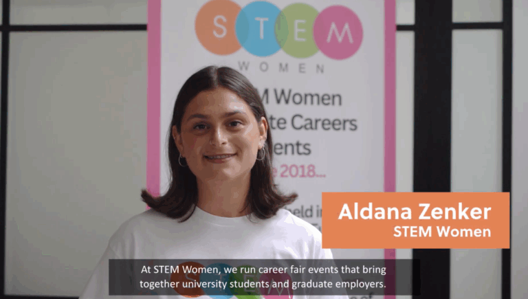 Aldana describes the exhibitor packages on offer in our exhibitor video. Most of our clients began working with STEM Women by exhibiting at a graduate careers fair!
